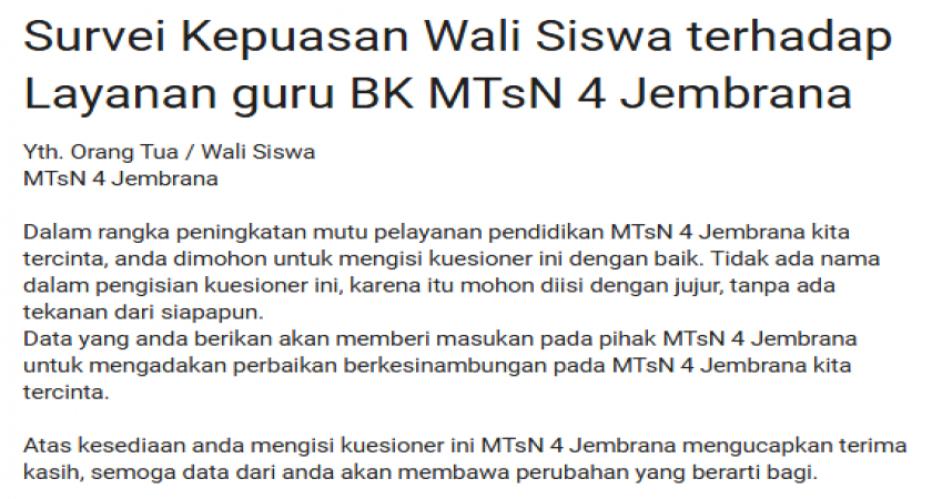 Survey Kepuasan Pelanggan untuk Orang Tua / Wali Siswa
