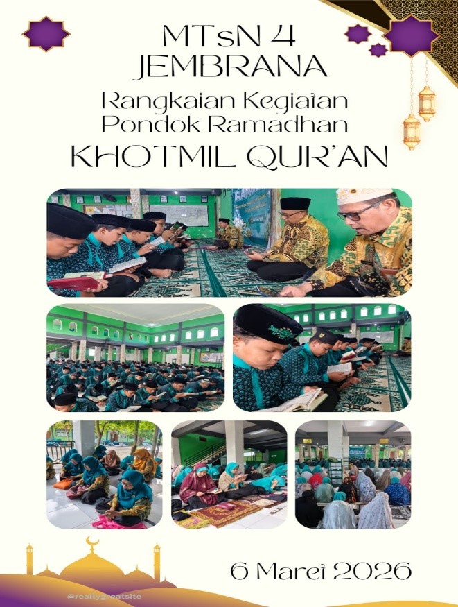 Selama tiga hari berturut-turut, mulai tanggal 4 hingga 6 Maret 2026, lingkungan MTsN 4 Jembrana tampak berbeda dari biasanya. Suasana religius begitu kental terasa seiring dengan diselenggarakannya kegiatan Pesantren Ramadan yang diikuti oleh seluruh siswa secara bergantian sesuai jadwal perjenjang kelas.